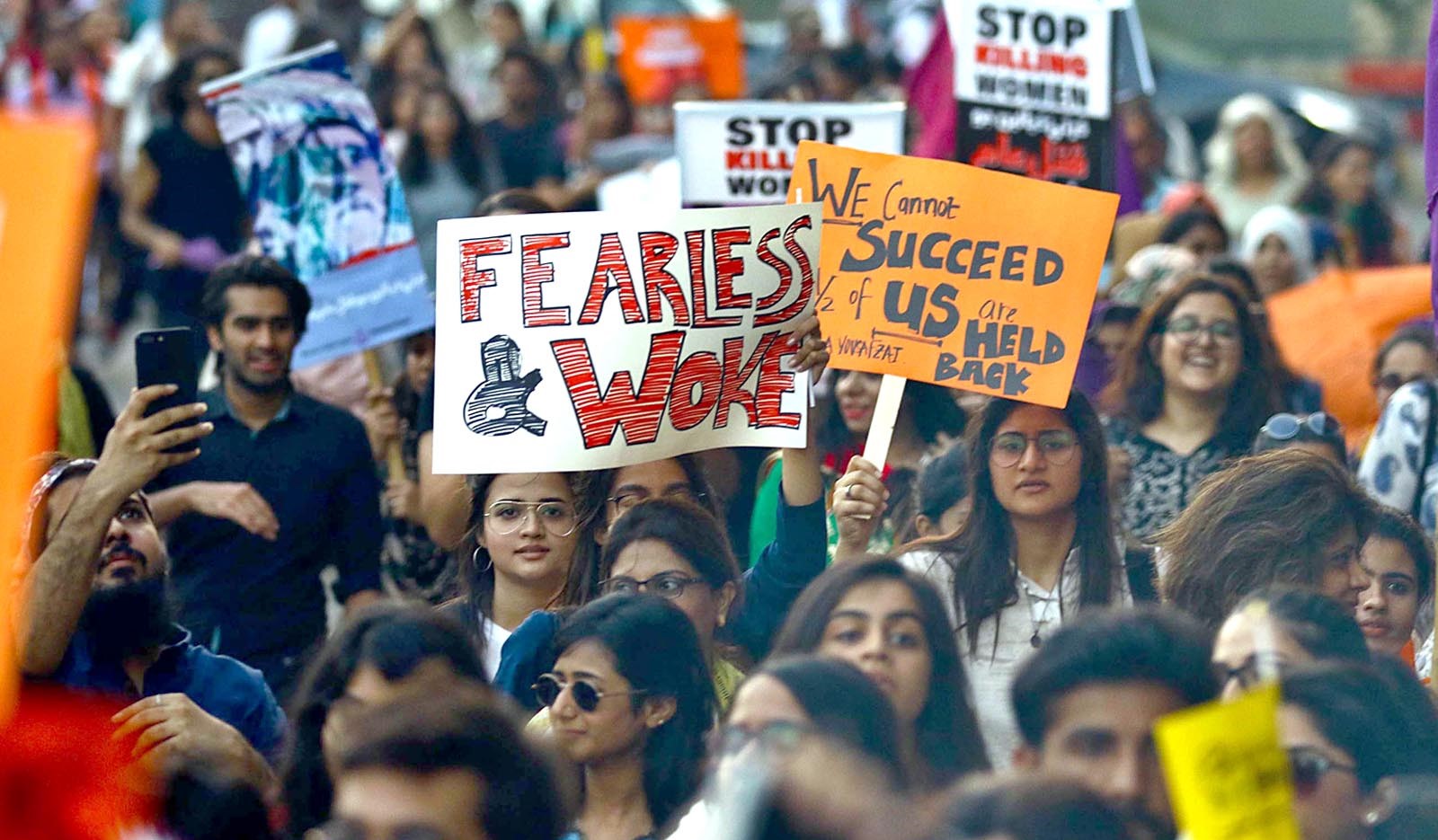 KARACHI: People take part in a march to mark International Women’s Day in Karachi, Pakistan, 08 March 2018. International Women’s Day is a global day celebrating the social, economic, cultural and political achievements of women.INP PHOTO by S Akber